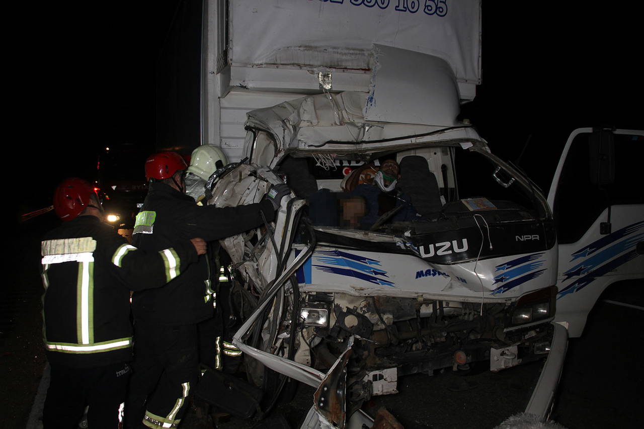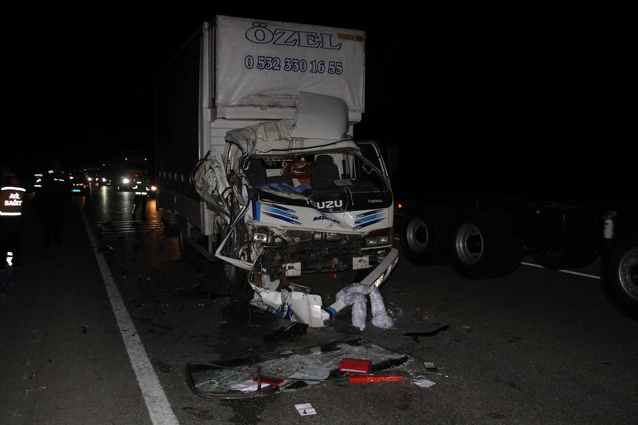 İzmir- Ankara D300 karayolu Kovukdere rampalarında, saat 23.30 sıralarında Uşak'tan İzmir istikametine seyir halinde olan Enver Özer (44) yönetimindeki 35 ATZ 049 plakalı kamyonet, aynı yönde ilerleyen Ümit Çalışkan'ın (53) kullandığı 45 NS 497 plakalı canlı tavuk yüklü TIR'a arkadan çarptı.