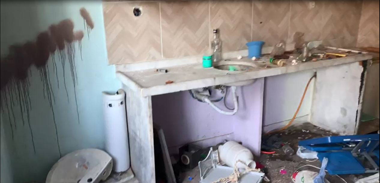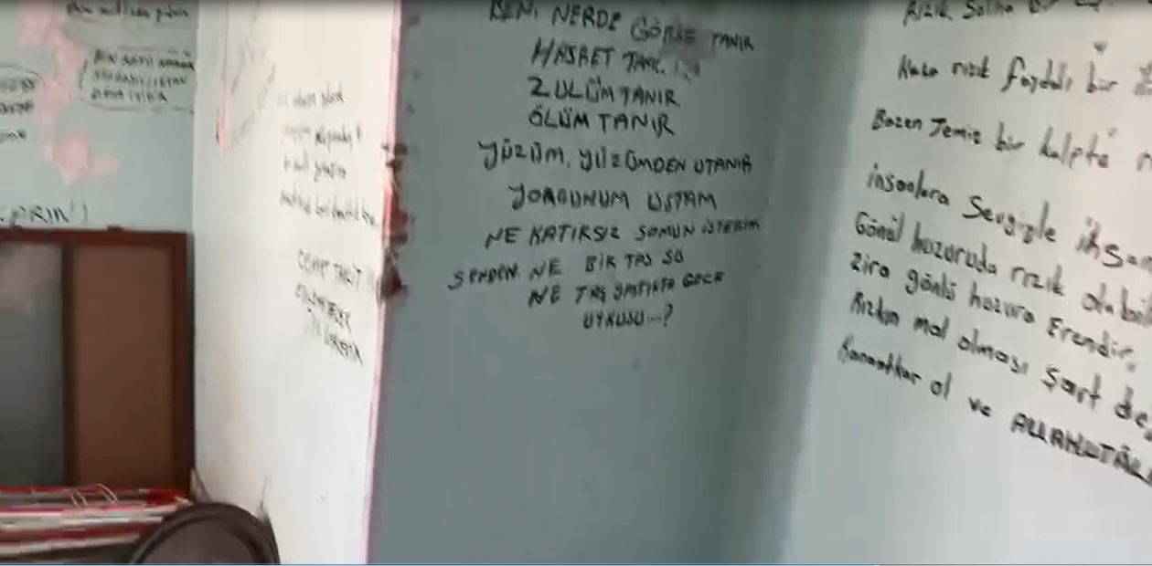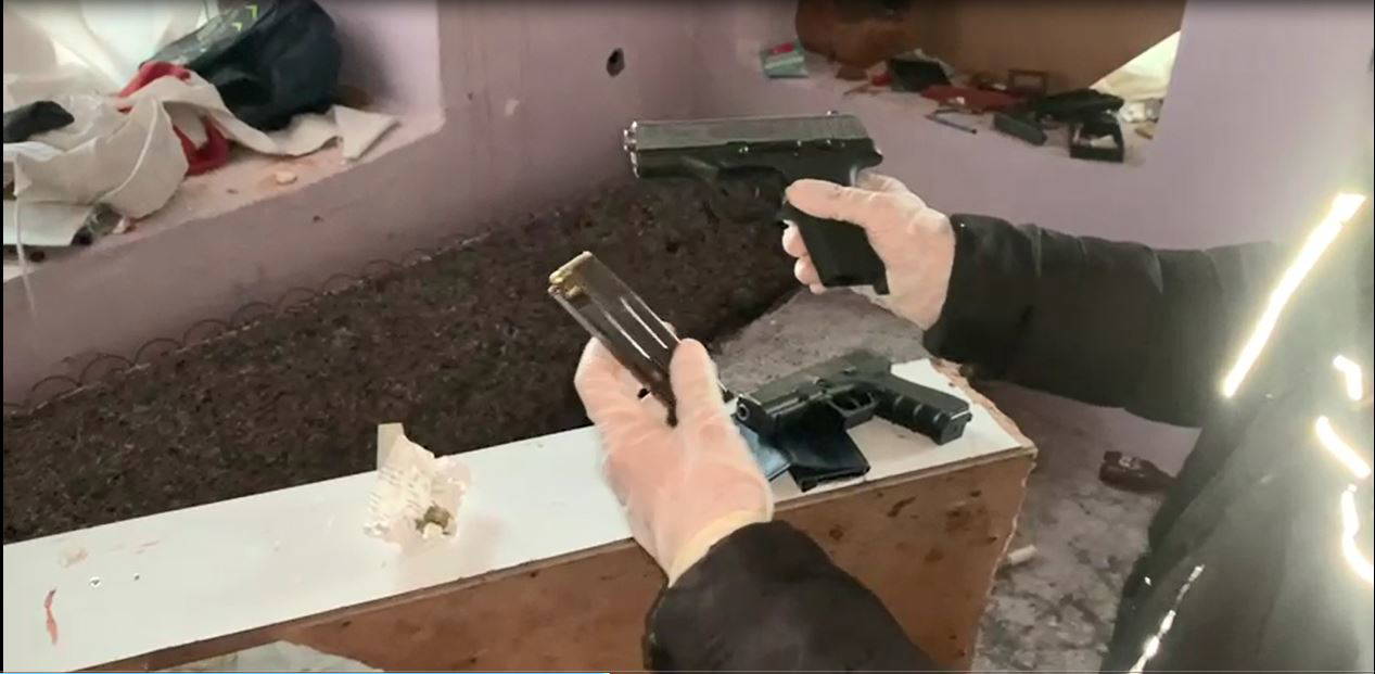 Duvarlarına yazılar yazılan evde biriktirilmiş çöple karşılaşan polis ekipleri, yapılan aramada 4 tabanca, paketler halinde bir miktar uyuşturucu madde ve 3 fişek ele geçirdi.