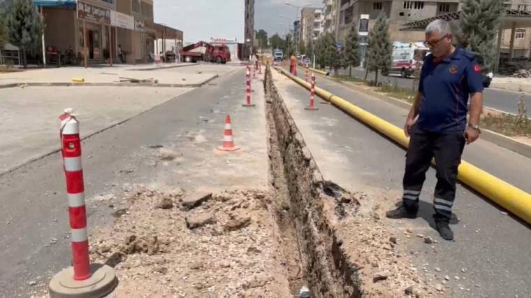 Edinilen bilgiye göre, öğle saatlerinde belediye ekipleri Çağçağ Caddesi'nde doğalgaz hattı için yapılan kazı çalışmalarında el yapımı olduğu belirtilen bomba düzeneği buldu.