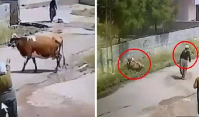 İnek olay yerinde öldü, o anlar güvenlik kamerasınca kaydedildi.