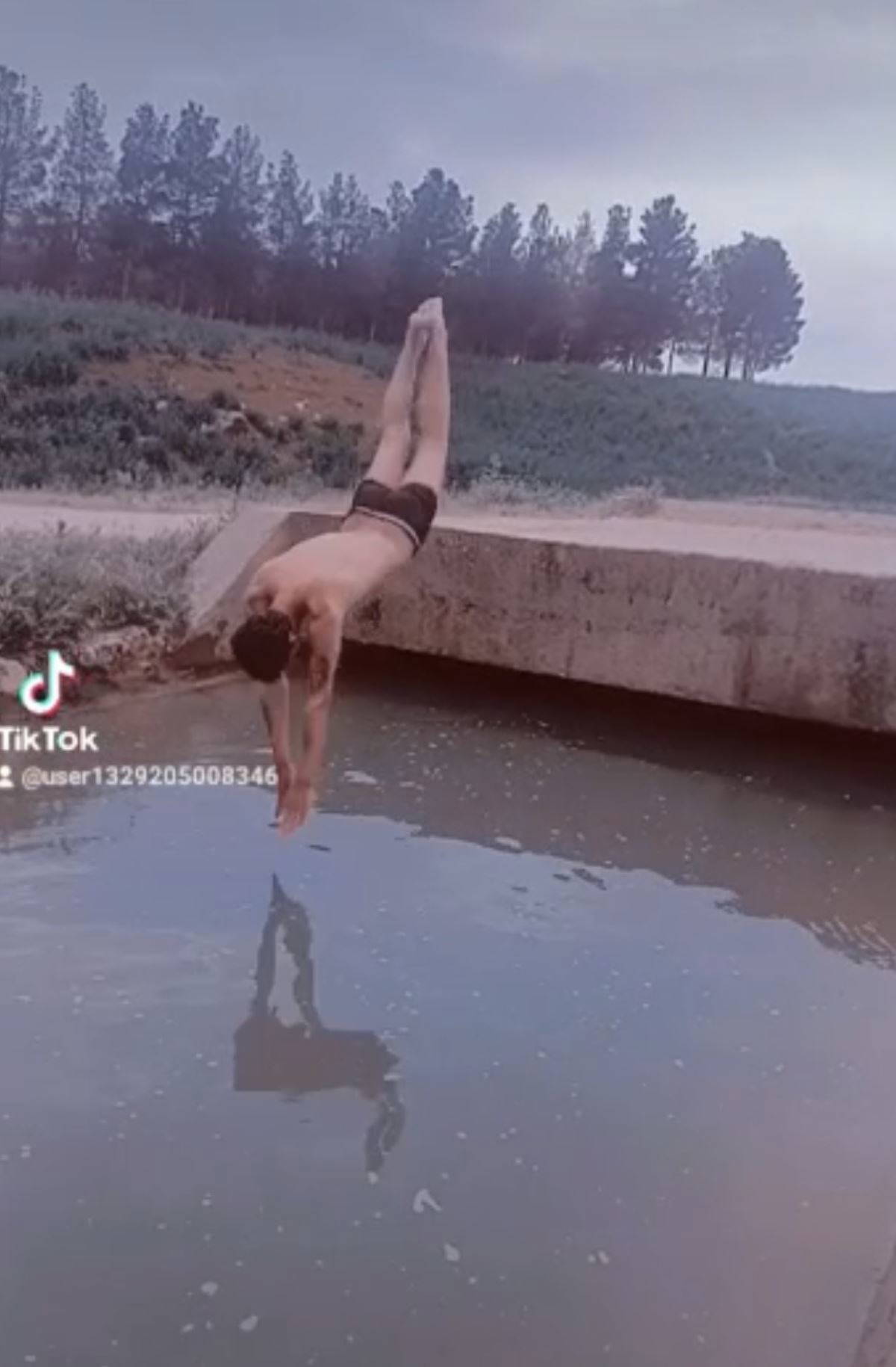 Görüntüyü çekmek için telefonun kamerasını açıp, kız kardeşine veren Hüseyni, köprüden su kanalına atladı. Kafası kanal zeminine çarpan Hüseyni, su yüzeyine çıkarak hareketsiz bir şekilde ilerledi.