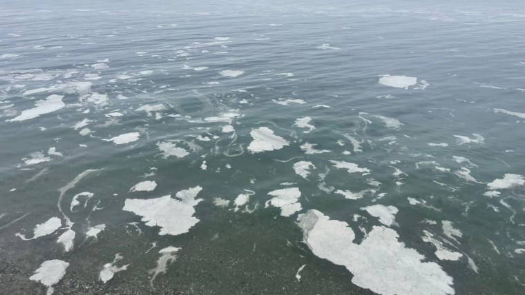 Mudanya sahilleri hafta sonu beyaz örtüyle kaplandı. Denizdeki kirlilik sahilden başlayarak 100 metre açığa kadar ulaştı.