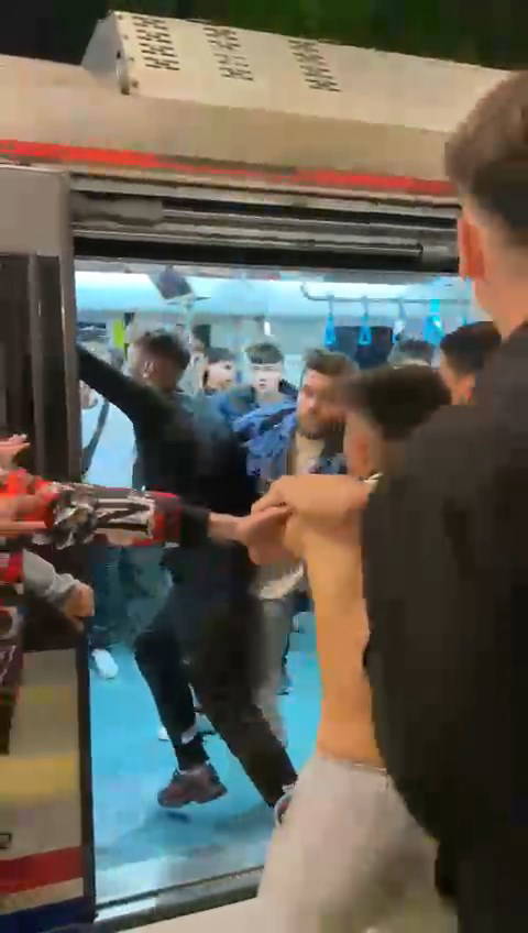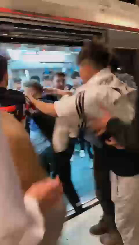 İstasyonda başlayan kavga bir süre trenin içinde de devam etti. Tekme ve yumruklarla iki grubun birbirine saldırdığı kavga bazı yolcular tarafından ayrılmak istendi.