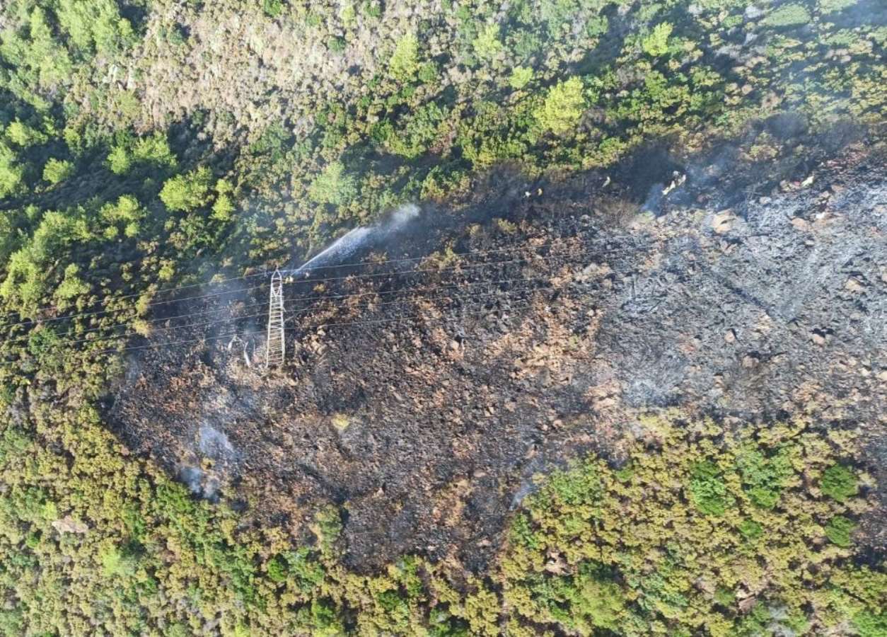 Enerji nakil hattında tel kopması sebebiyle çıktığı açıklanan yangında 5 dönüm alan zarar gördü.