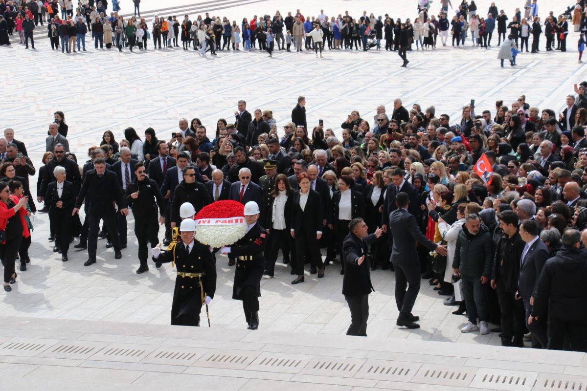 İlk olarak Aslanlı Yol’da yürüyen Akşener, Mustafa Kemal Atatürk’ün mozolesine çiçek bıraktıktan sonra Misak-ı Milli Kulesi’ne geçti.