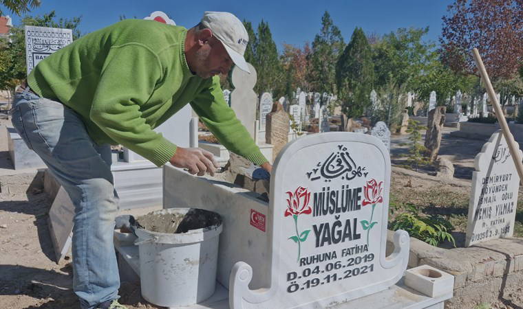 Karaman Belediyesi Mezarlıklar Müdürlüğü ekipleri de Müslüme’nin mezar taşlarını yenileyerek üzerine çiçek dikti.