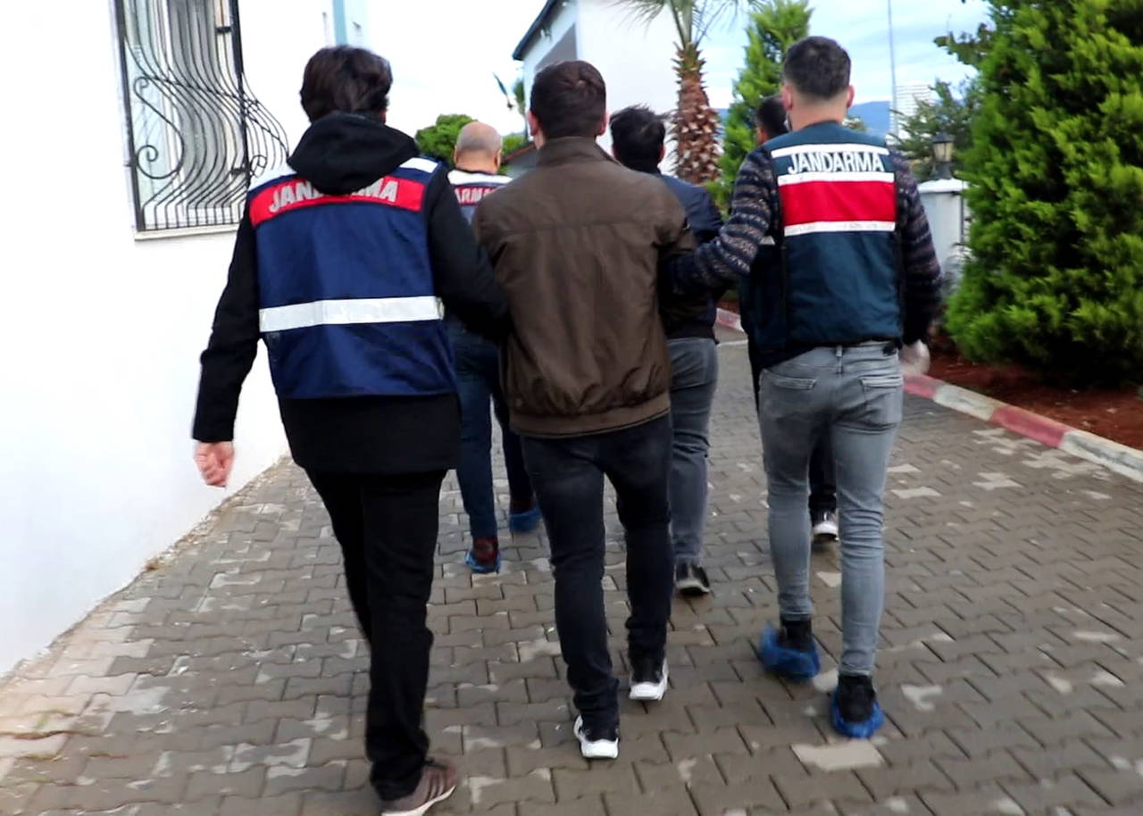 Gözaltına alınan şüpheliler işlemleri için jandarmaya götürüldü.