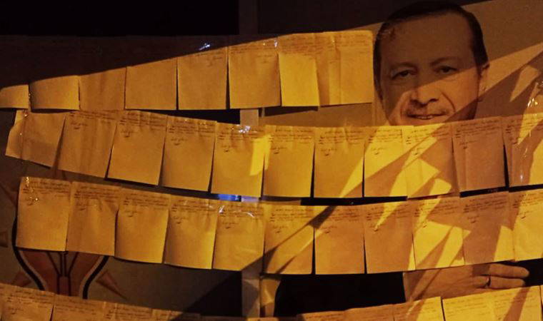 Yapılan toplu istifa eyleminin ardından istifa dilekçeleri AKP Mersin Bozyazı İlçe Başkanlığı'na mandallarla asıldı.