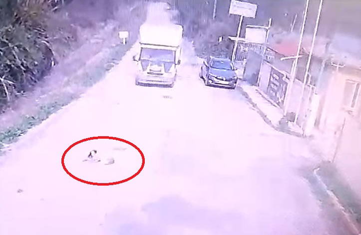 Barınak önündeki yolda görevlilerin 'Mutlu' ismini verdiği köpeğe, yattığı sırada kamyonet çarptı. Kamyonet 'Mutlu'nun üzerinden geçerken, sürücü durmadan yoluna devam etti.