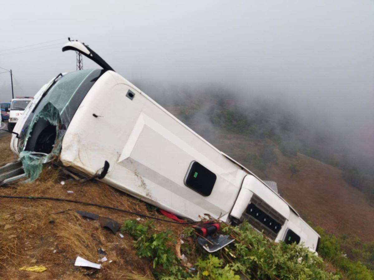 Antalya yönüne giden 16 ASR 690 plakalı Kamil Koç firmasına ait yolcu otobüsü, yağış ve sis nedeniyle kontrolden çıkıp, dağ yamacına çarptı ardından şarampole yuvarlandı.