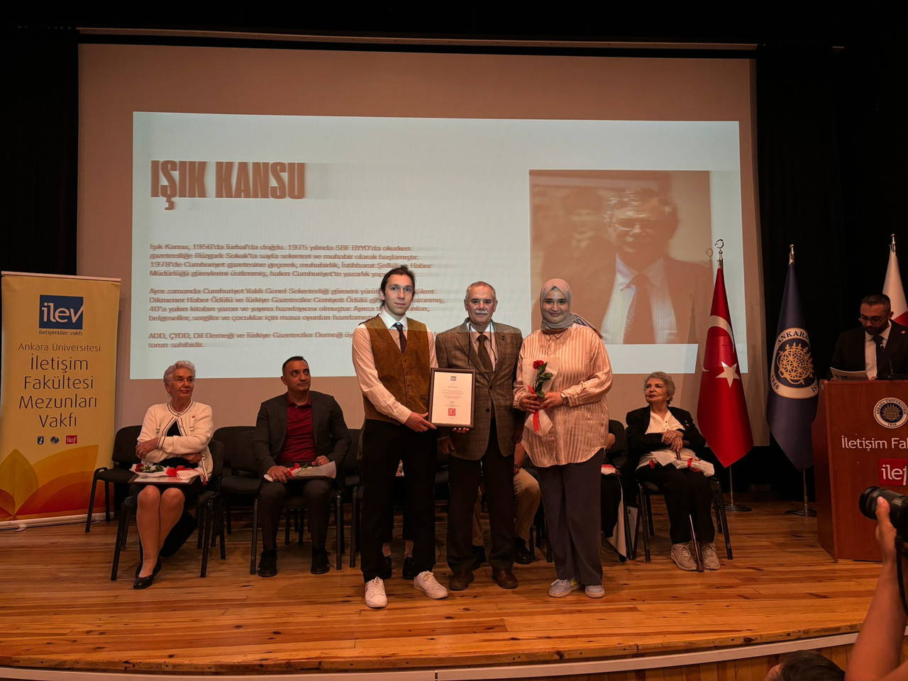 Ankara Üniversitesi İletişim Fakültesi Dekanı Prof. Dr. Fatih Keskin de, “Bugün burada yalnızca bir ödül töreni için toplanmadık. İletişim dünyasına yarım asır boyunca emek vermiş, kalemi, kamerası, sesi, duruşuyla tarihe not düşmüş kıymetli profesyonellerimizi onurlandırmak için bir aradayız. 50 yıl, sadece bir zaman değil, bir ömürlük çaba, değişen dünyaya rağmen sabit kalan meslek aşkı demek” dedi. Açılış konuşmalarının ardından öğretmenler tarafından üniversitede bulunan fotoğraf, radyo, reklam, halkla ilişkiler atölyeleri ve Görünüm gazetesinde çalışan öğrencilere plaket verildi. Öğrenciler, kendi plaketlerini almalarının ardından meslek büyüklerine plaket ve çiçek verdi. Yazarımız Işık Kansu’nun da plaket aldığı törende, “Birten Gökyay, Canan Avşaroğlu Özgür, Çetin Çiğdem, Elvan Naciye Zeynep Otyam Baransel, Füsun Baytok, Halil Çaylak, Hasan Lemi Özgen, Hülya Özün Tolakoğlu, Kamil Çevikalp, Kemal Güngördü, Kubilay Çalıkoğlu, Mahmut Adil Daldal, Mehmet Ümit Turpçu, Necla Zarakol, Nesli Çölgeçen, Nilgün Tarkan, Nuray Alemdaroğlu, Osman Nazmi Özer, Saim Tokaçoğlu, Şener Mete, Şükran Yalçın, Yılmaz Ekmekçi ve Zeki Çol” meslekteki 50’nci yılları kapsamında plaketle onurlandırıldı.