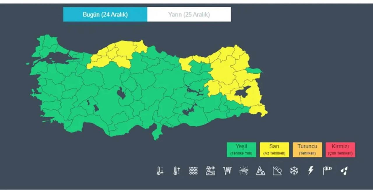 Meteoroloji Genel Müdürlüğü tarafından 21 il için sarı kodlu