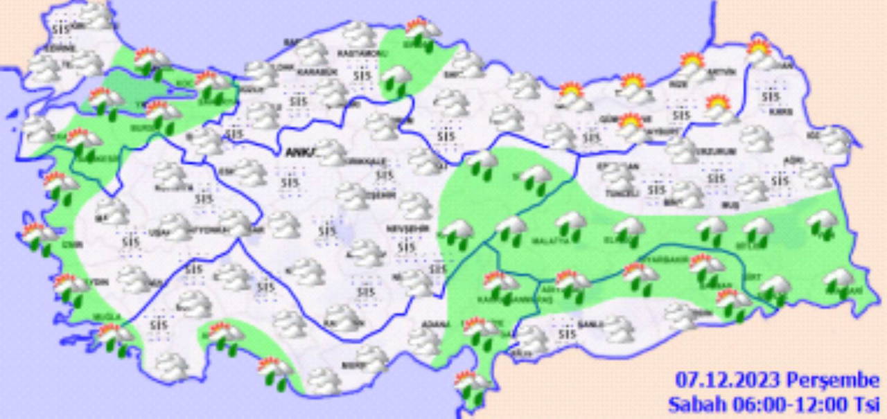 Yağışların; öğleden sonra Bursa ve Balıkesir çevreleri ile Çanakkale'nin doğu ilçelerinde, akşam ve gece saatlerinde Kıyı Ege ve Doğu Akdeniz ile İstanbul, Kocaeli, Yalova, Antalya, Gaziantep ve Kilis çevrelerinde yerel kuvvetli olması bekleniyor. Sabah saatlerinde iç ve doğu bölgelerde yer yer pus ve sis bekleniyor.