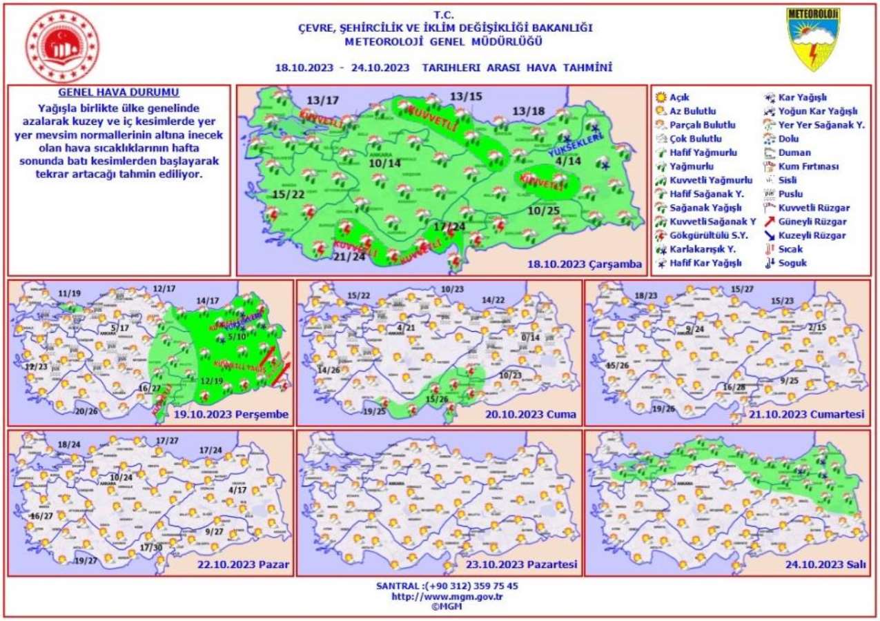 Öte yandan Samsun’da 18 Ekim Çarşamba günü sağanak yağış beklenirken hava sıcaklıklarının da 4 ila 6 derece azalarak, ekim ayı ortalamalarının altına inmesi bekleniyor. Samsun’da gündüz hava sıcaklığının 15 dereceye kadar düşmesi tahmin ediliyor.