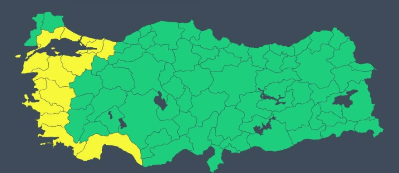 Meteoroloji, İzmir, Manisa, Aydın, Muğla, Çanakkale için sarı kodlu uyarı verdi. Kurum, bölgede yerel kuvvetli (21-50 kg/m2) sağanak beklendiğini bildirerek sel, su baskını, yıldırım ve ulaşımda aksamalar gibi olumsuzluklara karşı dikkatli ve tedbirli olunması konusunda uyardı.