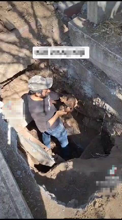 Paylaşımda, R.K.’nin açılan bazı mezarlardan çıkardığı kafatası ve kemikleri poşetlerin içine fırlattığı, el kol hareketleri yaparak dalga geçtiği görüntüler tepki çekti. Görüntülerde R.K., özensiz şekilde topladığı kemikleri poşetin içine fırlatıyor.