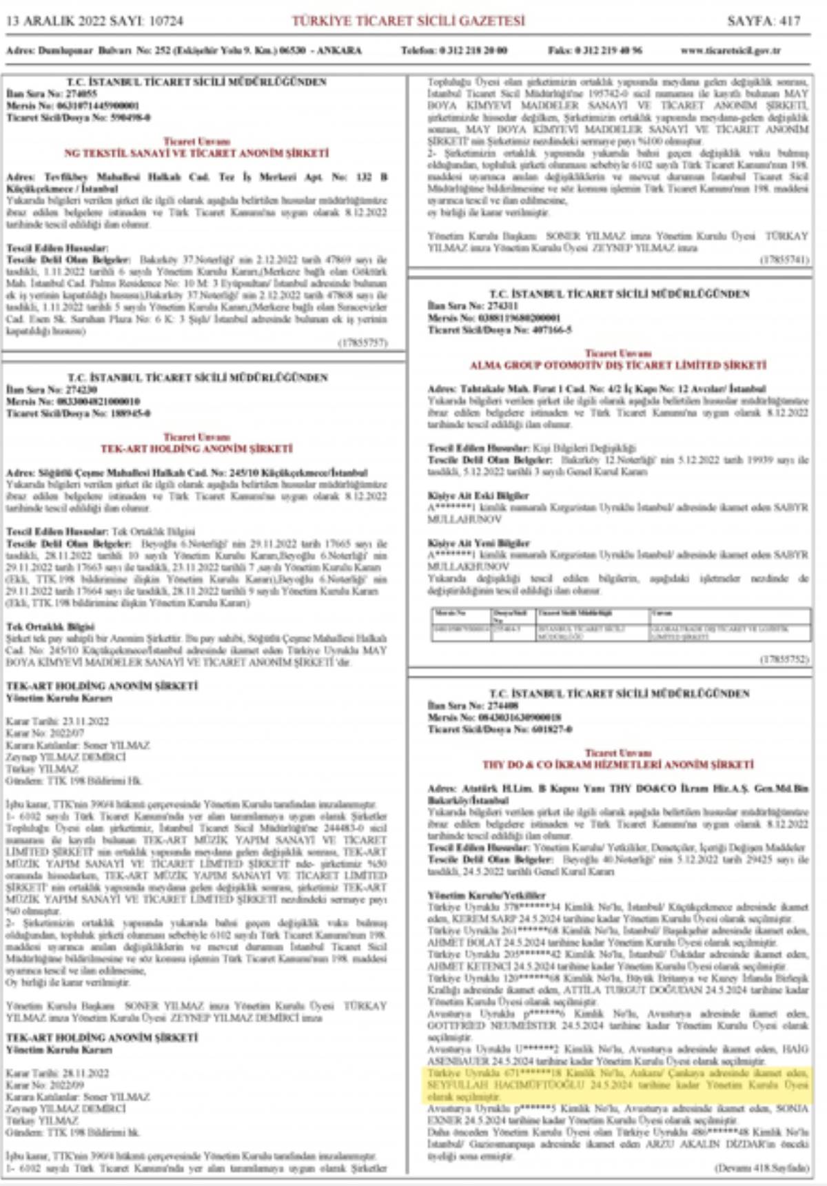 MGK Genel Sekreteri Seyfullah Hacımüftüoğlu’nun, Turkish DoCo adlı bir havayolu ikram firmasının yönetim kurulu üyesi olduğunu belirten Kılınç, şunları kaydetti: