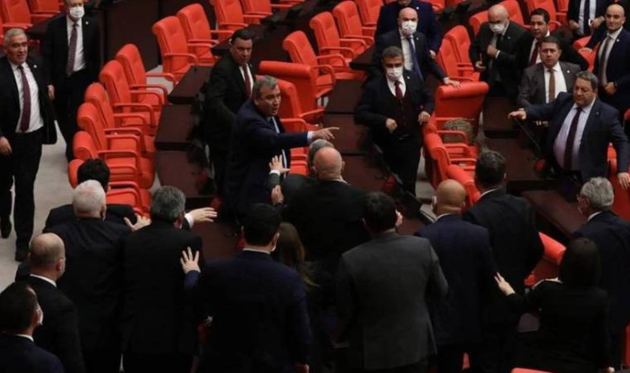 CHP milletvekilleri de aynı şekilde karşılık verdi. Yaşanan gerginlikte araya giren milletvekilleri kavgayı önledi.