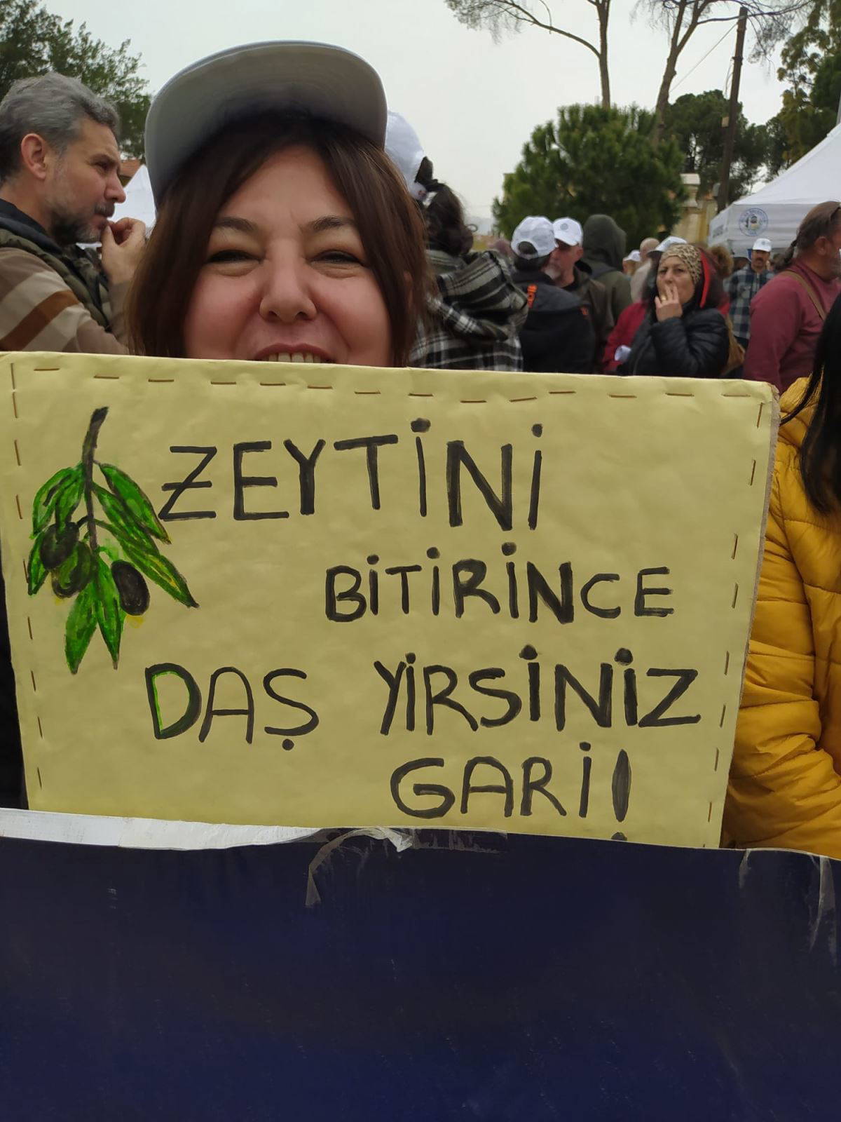 "Bugün de yine benzer bir mücadele amacıyla, gasp edilmiş yaşam hakkımızı savunmak ve geri almak için buradayız. Bilindiği gibi 1 Mart 2022 tarih ve 31765 sayılı Resmi Gazete’de yayımlanan yönetmelik ile Enerji ve Tabii Kaynaklar Bakanlığı’ndan Maden Yönetmeliğinde Değişiklik Yapılmasına Dair Yönetmelik adı altında söylenenler şöyle özetlenebilir; ‘Ülkenin elektrik ihtiyacını karşılamak üzere yürütülen madencilik faaliyetleri için zeytinlik alanlar sökülebilir veya taşınabilir’. Bu yönetmelik ile Zeytin sahalarının madencilik faaliyeti için kaldırılmasının önü açılmış ve zeytinciliğin idam fermanı imzalanmıştır.