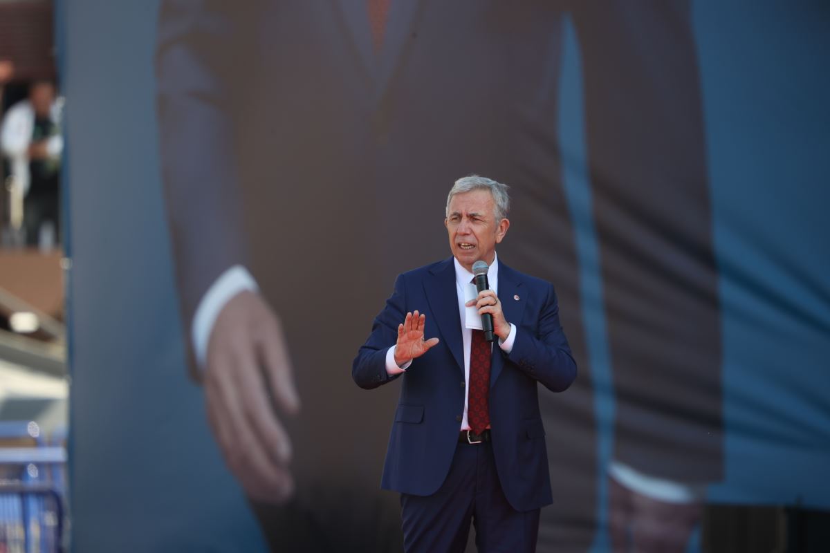 Karamollaoğlu'nun ardından sözlerine başlayan ABB Başkanı Mansur Yavaş, "Diyorlar ki biz gidersek darbe olur. Seçime girebilirsiniz ama kazanamazsınız diyorlar. Kazanmak yasak. Hayır, demokrasi yerini bulacak" diye konuştu.