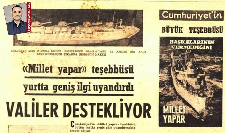 Gürdeniz, sözlerine şöyle devam etti: “Bağışlar yeni çıkarma gemilerinin yapılabilmesi için çığ gibi büyüyordu. 11 Mayıs 1965’te Türk Donanma Cemiyeti kuruldu. Cemiyet “Millet Yapar” kampanyasını Cumhuriyet gazetesinden devraldı. Önce Cumhuriyet gazetesinin yaktığı ateş ardından da Donanma Cemiyeti sayesinde halkın katkıları ile 20 Temmuz 1974 sabahı Kıbrıs’a yapılan amfibi harekâtın 32 parça çıkarma gemisi donanmaya teslim edilmiş oldu. Yani Kıbrıs’ta Türkiye kazandıysa sebebi halkın bağışlarıyla temin edilen çıkarma gemileridir. Cumhuriyet donanmasının Atatürk sonrası büyük uyanışı Cumhuriyet’in manşeti ile tetiklenmiş oldu. Mavi Vatan’ın büyük uyanışına ve Kıbrıs adasında jeopolitik değişime neden olan gücün yaratılmasına katkı sağlayan söz konusu dönemin her kademedeki devlet yöneticileri ile attığı manşet ile büyük fark yaratan ve kampanyanın arkasında duran Cumhuriyet gazetesinin çalışanlarına ve en önemlisi kadirşinas ve onurlu Tük milletine bugünkü nesiller çok şey borçludur.”