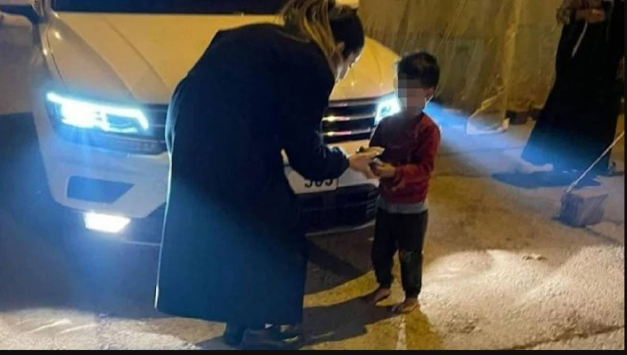 (AKP Genel Merkez Kadın Kolları MKYK üyesi Kübra Dörtkardeş’in depremden 13 gün sonra gittiği çadır kentte çıplak ayaklı bir çocuğa lüks arabasının önünde meyve suyu ve kek verirken fotoğraf çektirip paylaşması eleştirilere yol açmıştı.)