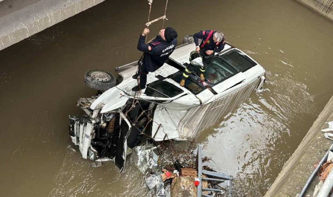İtfaiye ekiplerinin merdivenle ulaşarak sedyeyle ambulansa taşıdığı yaralı sürücü, Karabük Eğitim ve Araştırma Hastanesi'ne kaldırıldı.