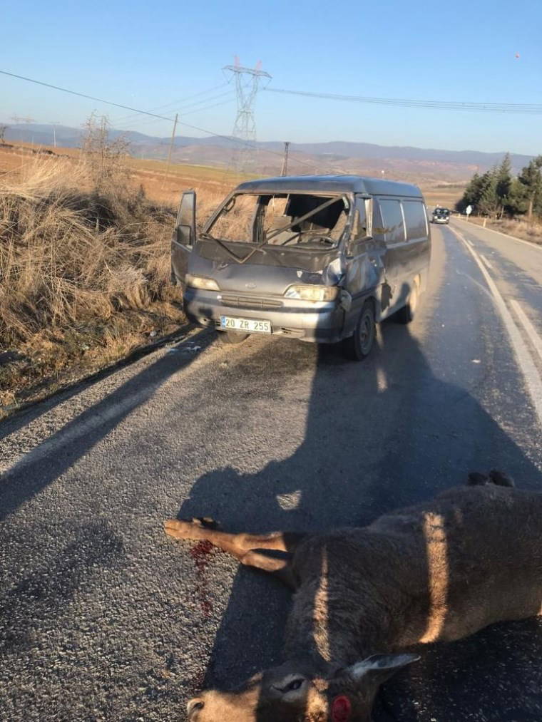 Çarpmanın etkisiyle geyik olay yerinde telef olurken, kazada sürücü ile birlikte N.Ş., yaralandı. Yaralılar sonrasında çevredekilerin haber vermesi üzerine olay yerine gelen ambulanslarla hastaneye kaldırıldı.