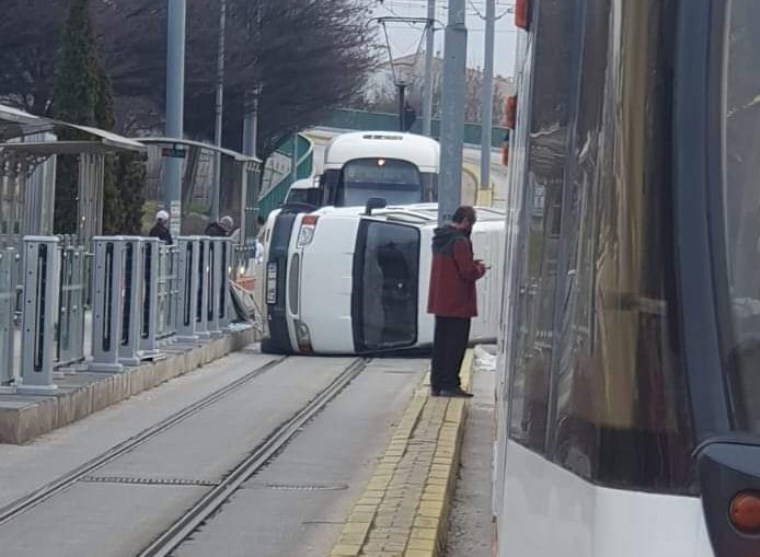 Edinilen bilgiye göre, minibüs tramvay yolundan gittiği esnada sürücüsünün direksiyon hâkimiyetini kaybetmesi sonucu devrildi. Kaza sonucunda araçta ve yol üzerindeki durakta maddi hasar oluştu.