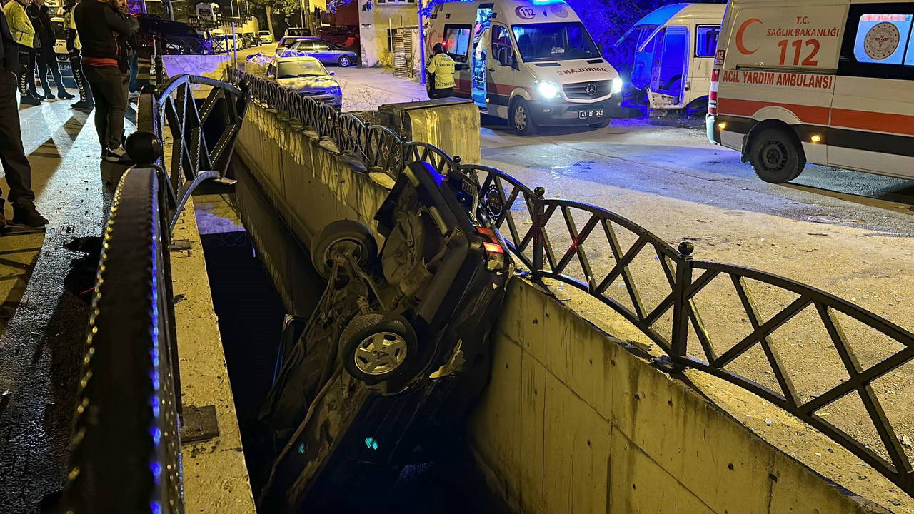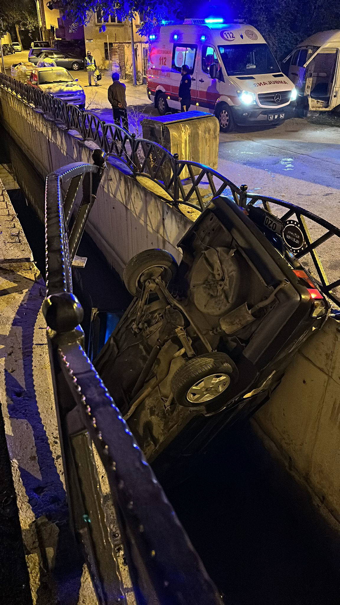 Savrulan otomobil, ardından yol kenarındaki demir korkulukları aşarak su kanalına düştü. Kazada sürücü G.G. ile yanındaki arkadaşı M.C. (19), yaralandı. Yaralılar, sağlık ekiplerince hastaneye kaldırıldı.