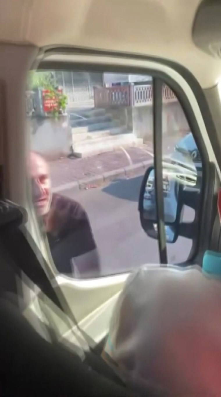 Kilitli olduğu için kapıları açamayan kişi, öfkelenerek bu kez de servis aracının kapısını ve camını yumrukladı. Öfkeli kişiyi, çevredekiler güçlükle sakinleştirdi.