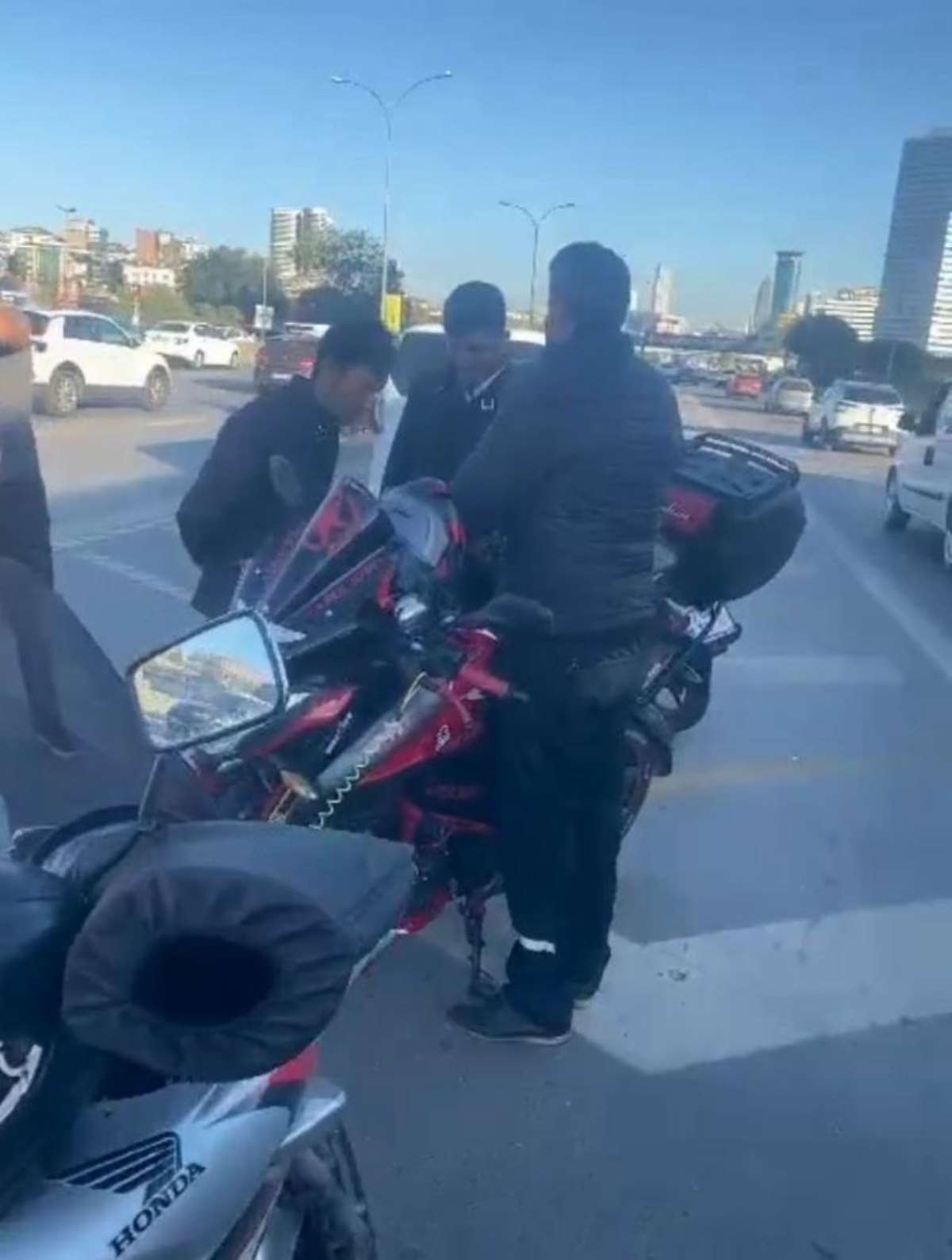 Durumun farkına varan bir başka motosikletli ise motosikletin parçasının çıkarıldığını fark etti.