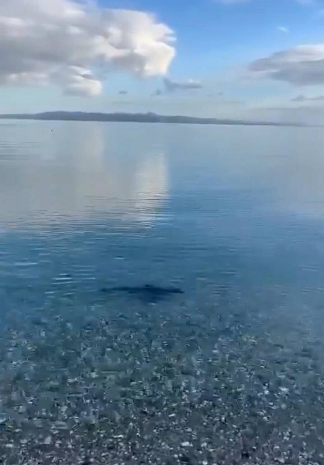 Kıyıda avlandığı görülen köpek balığının bölgede gezdiği ve daha sonra gözden uzaklaştığı görüldü.