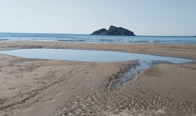 İztuzu plajında suların çekilmesiyle kum tepecikleri oluştu.