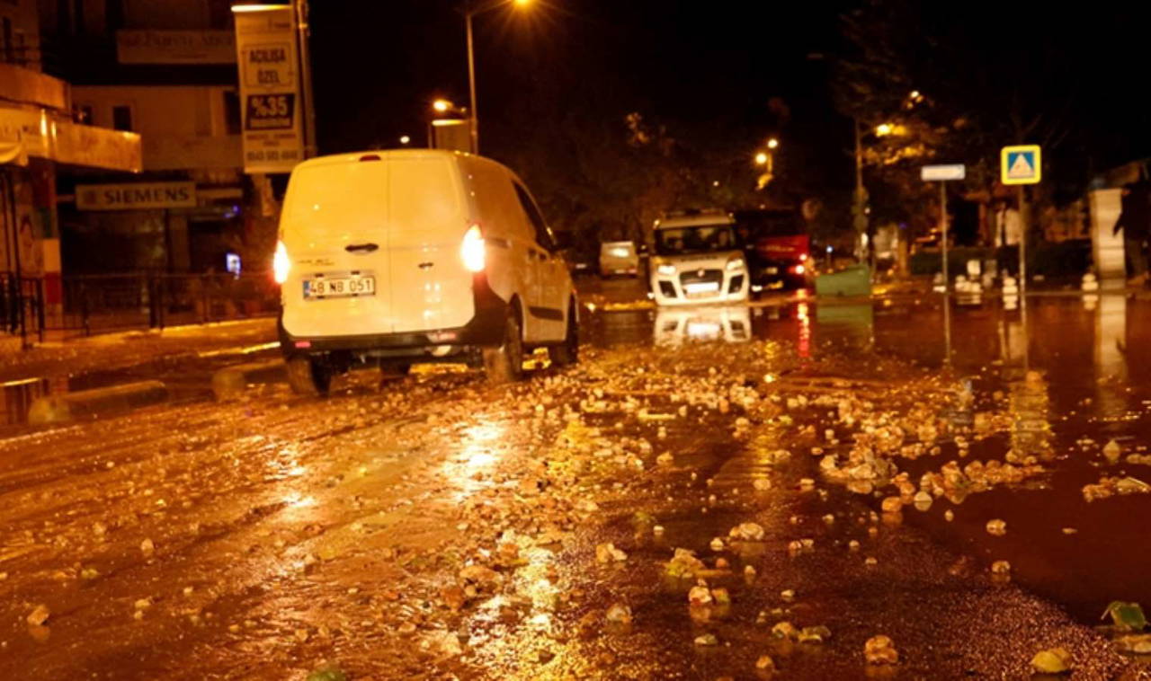 Aşırı yağış sonrası sokaklar göle dönerken, araçlar yolda kaldı. Devriye görevi yürüten bir polis aracı da aşırı yağış sonrası göle dönen yolda kaldı. Polis aracı itfaiye ekipleri tarafından itilerek güvenli bölgeye taşındı.