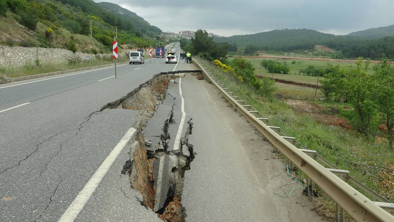 Sürücülerin ihbarı ile bölgeye karayolları ekipleri sevk edildi. Ekipler, tek yönlü olarak trafiğe kapatılan yolda çalışma başlattı.