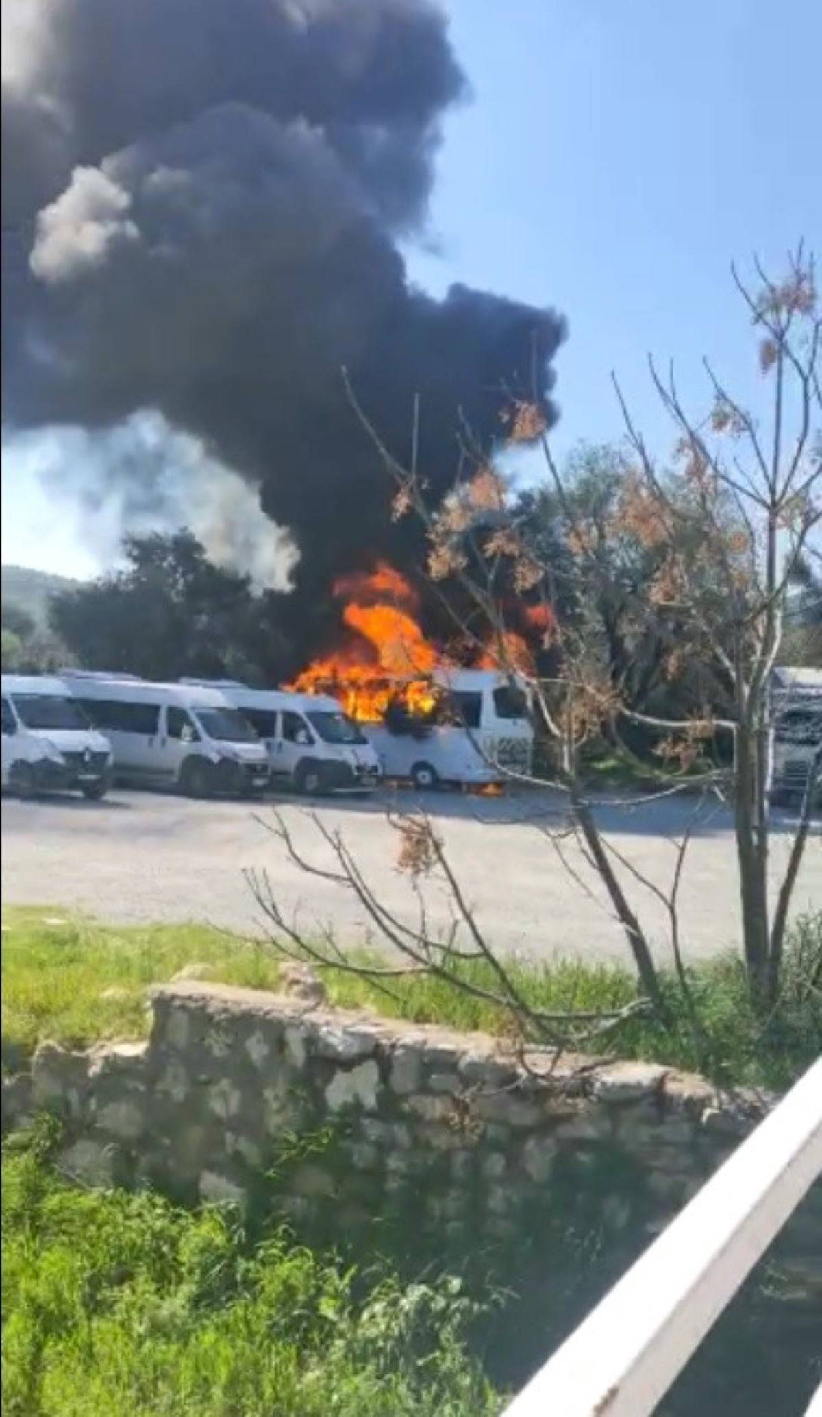 Muğla, Ortakent Pazaryeri otoparkında park halindeki 48 S 1258 plakalı okul servisinin sürücüsü, aracı çalıştırmak için marşa bastığı anda minibüste yangın başladı. Araçtan inen sürücü, çevredeki yurttaşlardan yardım istedi. Bölgedeki vatandaşlar, yangına müdahale etmeye çalıştı fakat alevler kısa sürede tüm aracı sardı. Okul servisinin yanındaki başka bir minibüs, hızlı şekilde bölgeden alınarak yanmaktan son anda kurtarıldı.