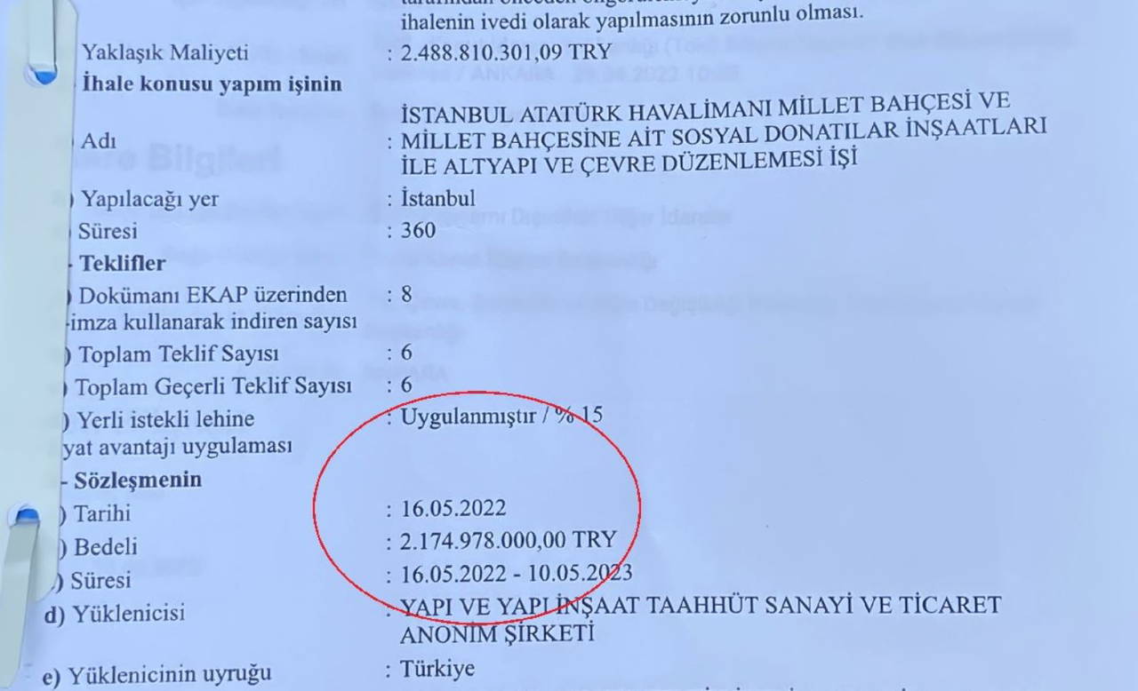 İmamoğlu, Atatürk Havalimanı ihalesini alan firmanın sözleşme tarihinin 16 Mayıs olduğunu ancak iş makinelerinin günler öncesinden pistlere girdiğini açıkladı.