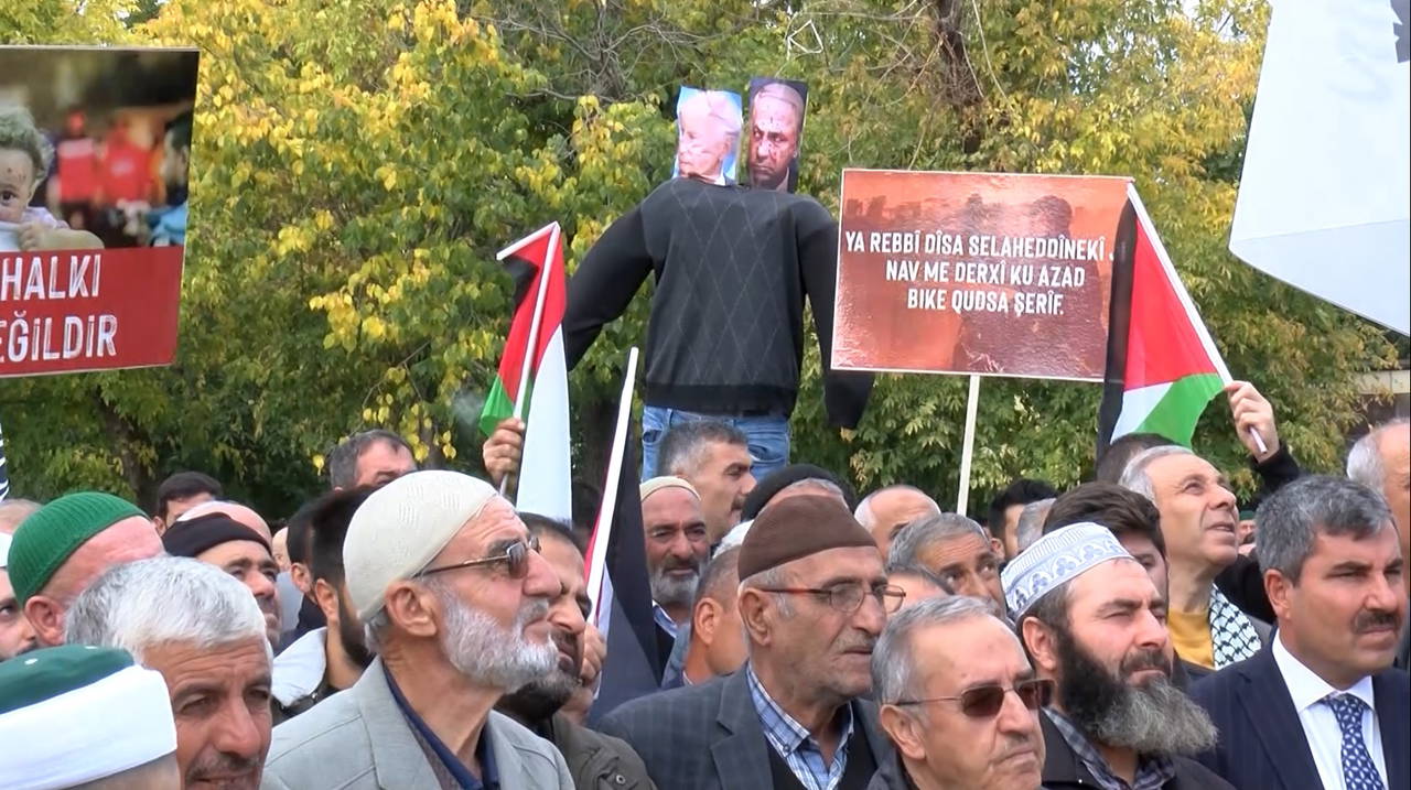 Muş’ta, İsrail’in Filistin’e yönelik saldırılarına tepki göstermek ve Filistin’e destek amacıyla, 'Büyük Mescid-i Aksa Buluşması' adıyla gösteri düzenlendi.