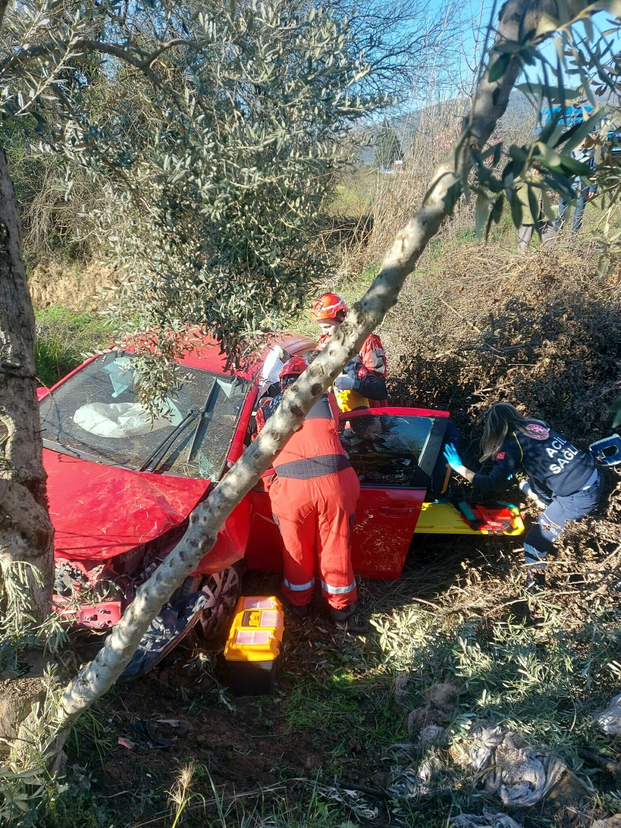 Metrelerce savrulan otomobil dere yatağında ağaca çarparak durdu. Kazayı görenlerin ihbarıyla bölgeye itfaiye ve sağlık ekipleri sevk edildi.
