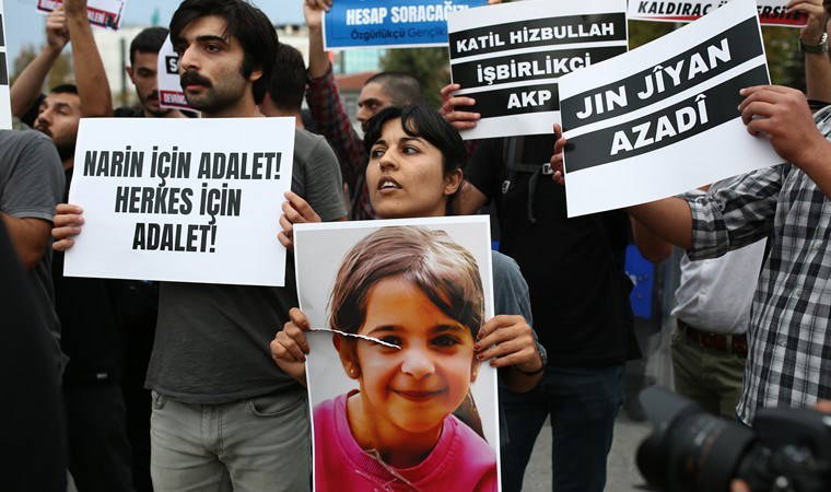 Özen, "Narin'in kaybedilmesine karşı gösterilen kitlesel tepkiler sonucunda cansız bedeni tam 19 gün sonra aynı derede bir çuvalın içerisinde bulundu. Ardından Nevzat Bahtiyar isimli bir şahıs 200 bin TL karşılığında Narin'in cansız bedenini, amcasından alarak dereye götürdüğünü itiraf etti. Bu itiraf gerçekleşmeseydi coğrafyamızdaki kayıplar listesine bir kişi daha eklenebilir, Narin'e ne olduğu bizlerden gizlenebilirdi. Bizler her gün çocuk ölümlerine, kadın ölümlerine uyanırken faillerin cezasızlık ile ödüllendirildiğini görüyor, bir çok kişinin kaybedildiğine ve akıbetine dair en ufak bir bilgi edinemediğimize şahit oluyoruz. Açıktır ki Gülistan Doku'yu dört yanı kameralar ile çevrili Dersim'de bulmayan ve failleri aklayanlar, Narin'i katledenlerdir. Ve yine açıktır ki, Berkin Elvan'dan Cemile Çağırga'ya, Ceylan Önkol'dan Uğur Kaymaz'a çocukları katleden siyasi iktidar, çocuklara yönelik her türlü suçu teşvik etmekte istismar, tecavüz, katletme ve kaybetme gibi pratiklerin önünü açmaktadır" diye konuştu.