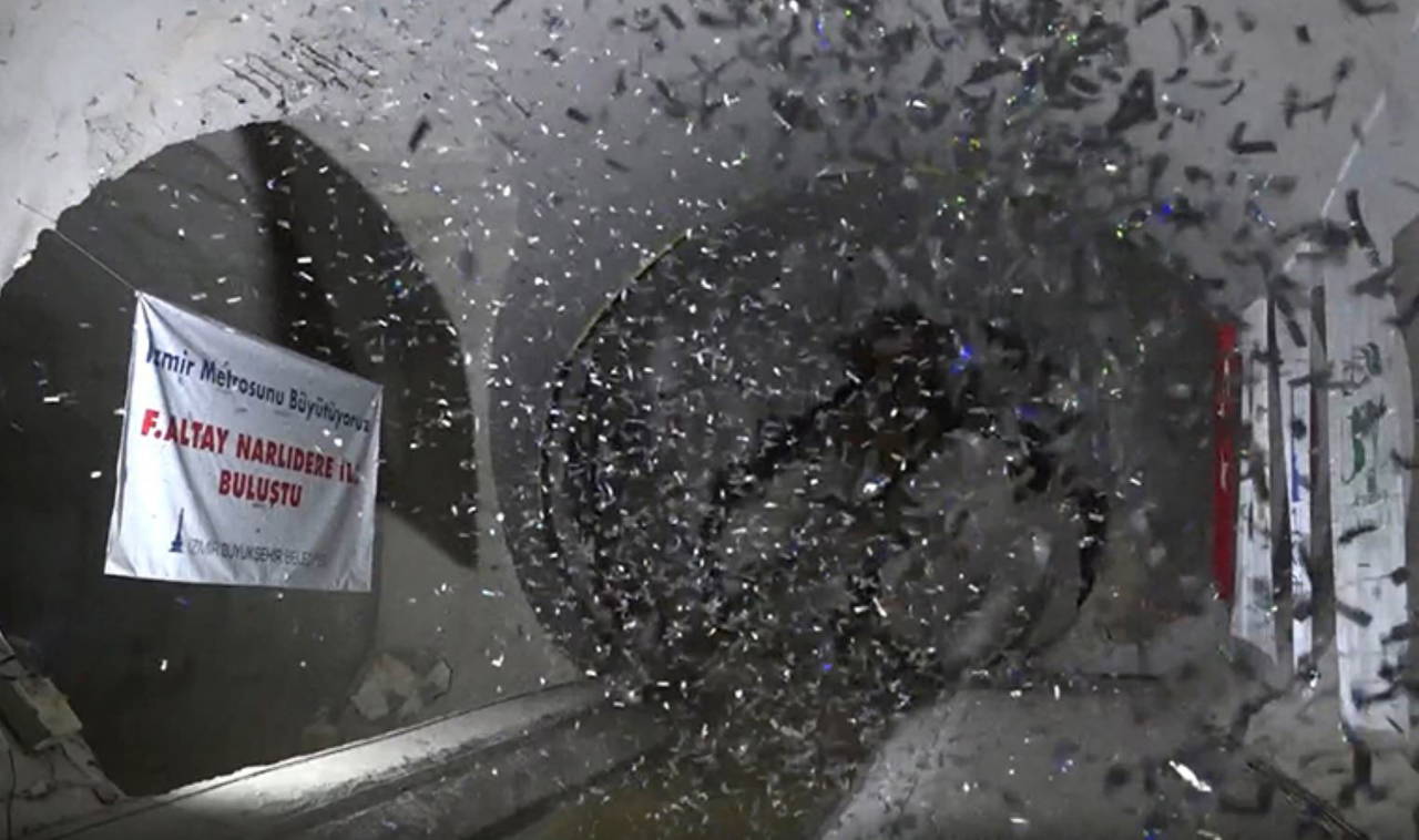 İzmir Büyükşehir Belediyesi tarafından yapılan Fahrettin Altay-Narlıdere Metro hattında tünel kazıları tamamlandı. Tünel açma makinesinin son tüneli ışığa kavuşturduğu an Narlıdere Kaymakamlık İstasyonu’nda düzenlenen törenle ekranlara yansıdı.