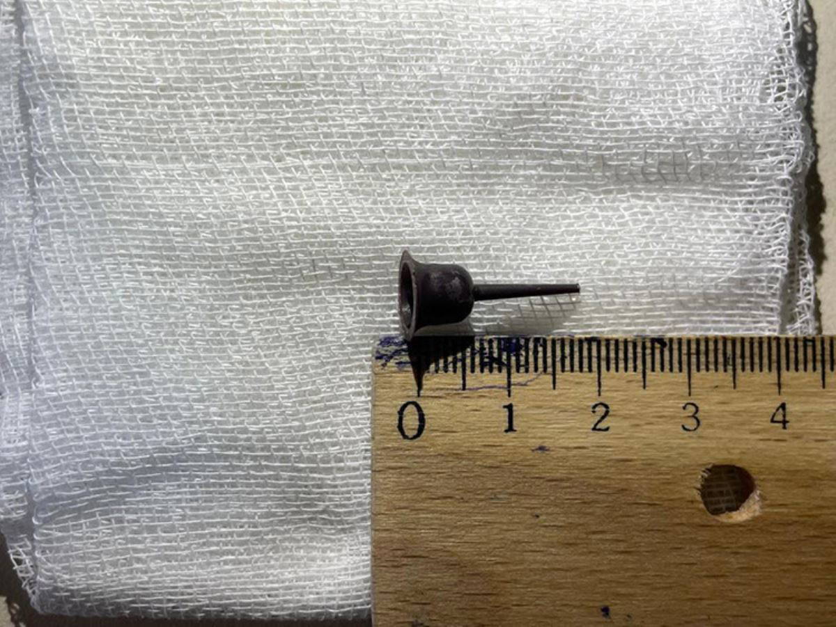 Göğüs Cerrahı Doç. Dr. Banu Yoldaş, Kalaycı'nın yaklaşık 9 yıldır soluk borusunda bulunan 2 santimetre büyüklüğündeki mum tutacağını ameliyatla çıkardı.