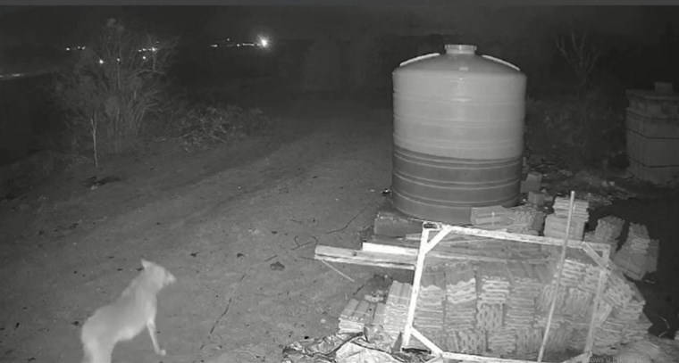 Arazide yiyecek bulmakta zorlanan kurt, belde çevresindeki bağ evlerinin bulunduğu alana indi. Bağ evinin çevresinde bir süre gezinerek yiyecek arayan kurdun görüntüleri güvenlik kamerasına yansıdı.