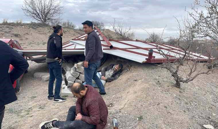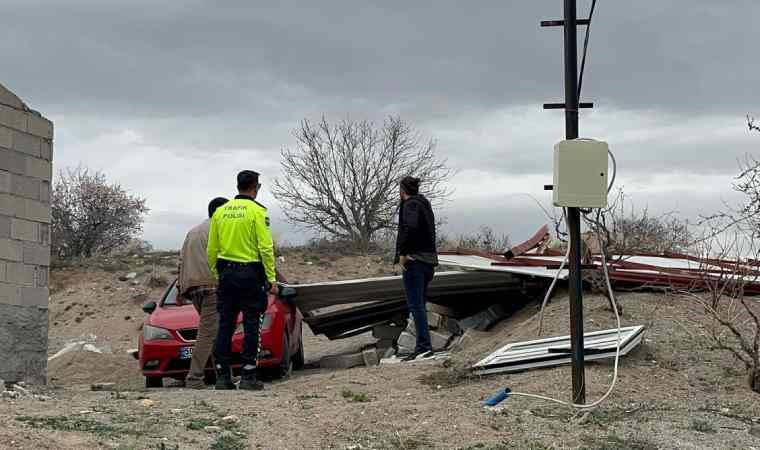 Alınan bilgiye göre, Nar beldesi Aşağı Mahalle Öz mevkisinde bulunan bağ evinde, kuvvetli rüzgar nedeniyle sac metalden oluşan çatı, yerinden sökülerek savruldu.