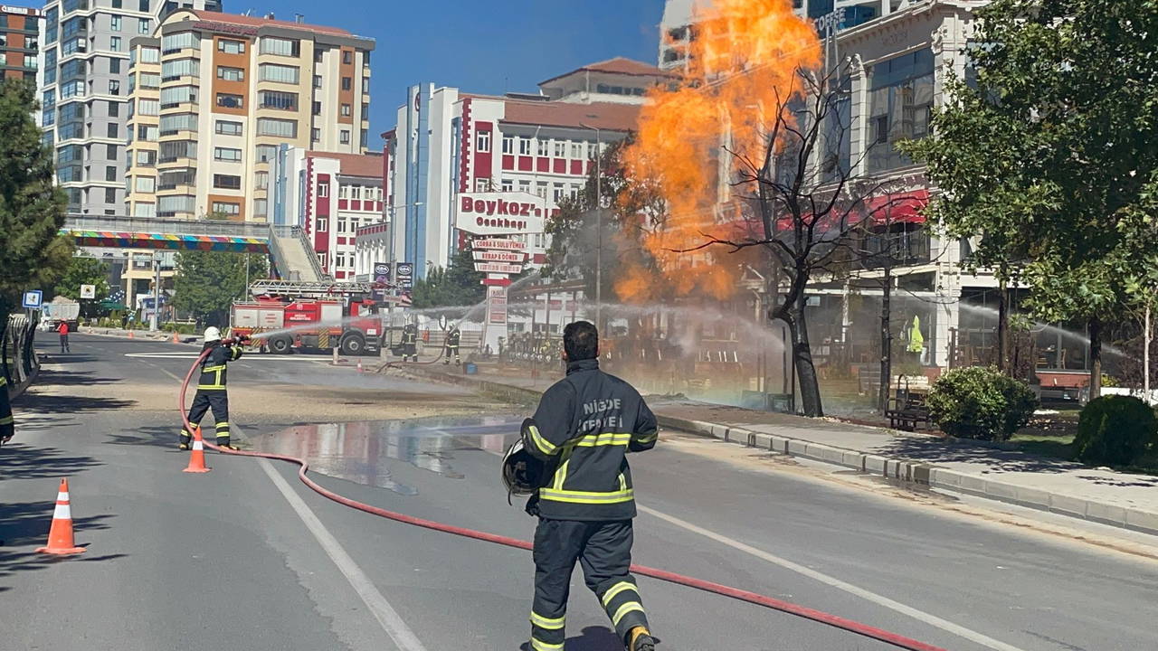 Niğde'nin Aşağı Kayabaşı Mahallesi Atatürk Bulvarı'nda elektrik altyapı çalışmaları sırasında doğalgaz taşıyan ana boru hattında patlama oldu.