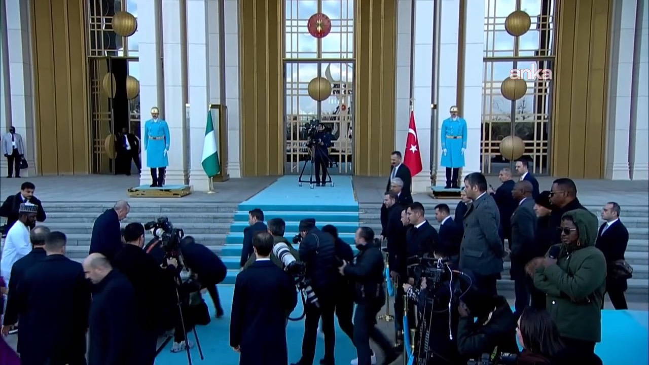 Türkiye'ye resmi ziyarette bulunan Nijerya Cumhurbaşkanı Bola Ahmed Tinubu, Cumhurbaşkanı Recep Tayyip Erdoğan tarafından resmi törenle karşılandığı Cumhurbaşkanlığı Külliyesi'nde yere düştü.