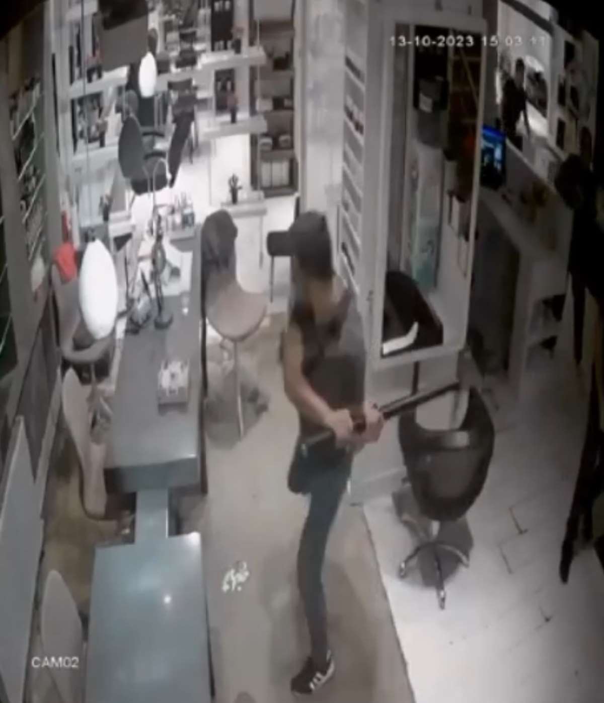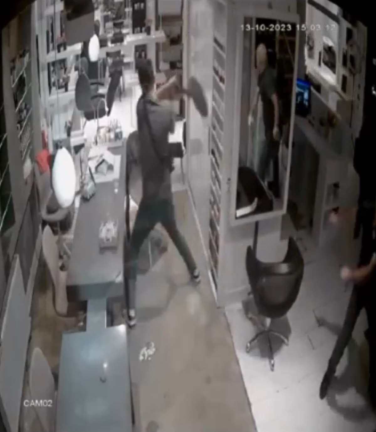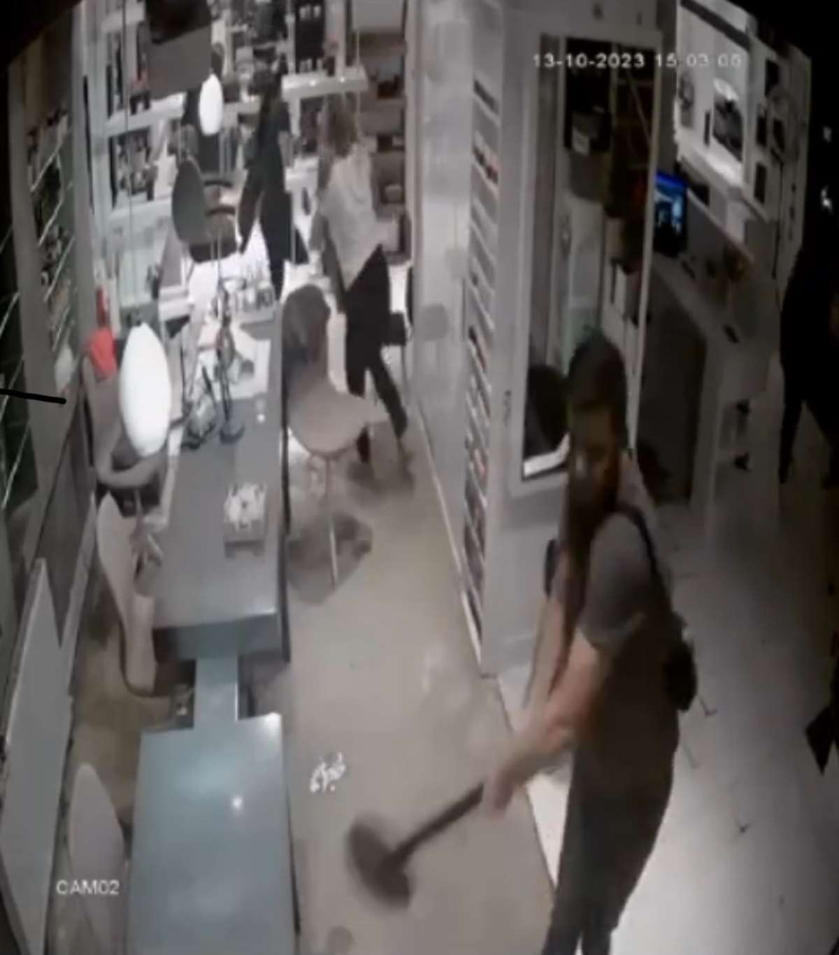 İşyerindekilere sopayla vurarak kıran şahıs, ortalığı adeta savaş alanına çevirdi.