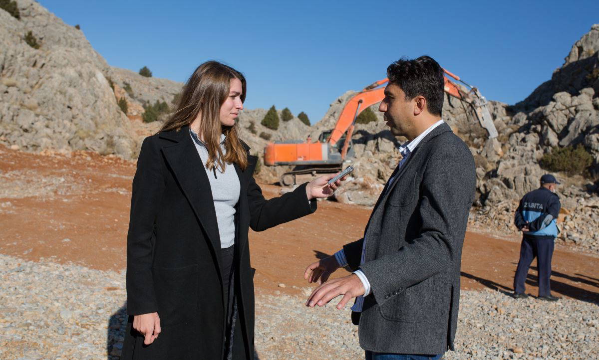 Maden işletmecileri ile Bozan arasında ilginç bir diyalog yaşandı. Görevliler, İlhami Bozan’a “Yetkisiz bir şekilde maden sahasına girip inceleme yapmanızı istemiyoruz. Bu kadar insanla çalışma alanına girmeyin. Gelin sadece sizinle bölgeye gidelim” teklifinde bulundu. Bunun üzerine Bozan da “Ben zabıta ile belediye başkanı olarak alanı incelerim. Muhtarım ve belediyede görevli arkadaşlarımla içeride incelemeleri yapacağım” yanıtını verdi. Bir süre yaşanan sözlü tartışmanın ardından Bozan ile birlikte maden sahasına girdik.