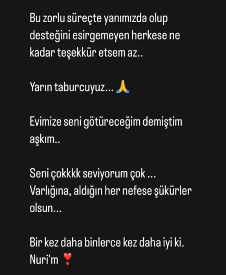 Burcu Alço, yaptığı yeni açıklamada oyuncunun yarın taburcu olacağını duyurdu.